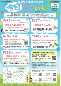 - 0歳児のお子さんとその保護者様※1歳の誕生月まで参加可能(8月は開催なしのため、8月生まれのお子様は9月まで参加可)
