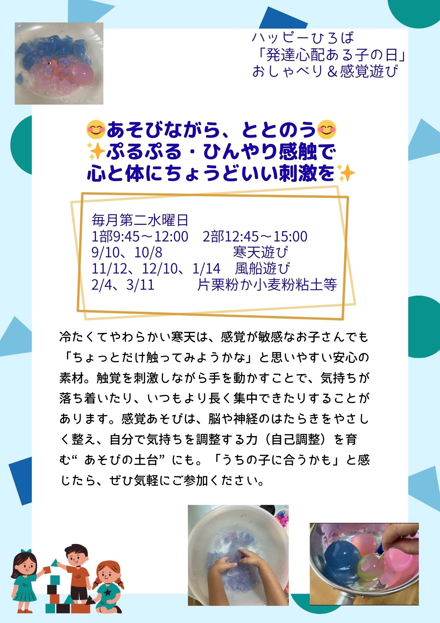 9/10(水)「発達に心配ある子の日」@親と子のつどいの広場 ハッピーひろば