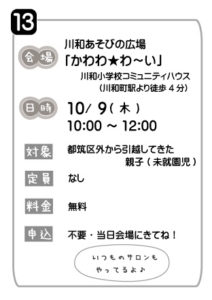 10/9(木)引っ越してきた方向けイベント開催!@川和あそびの広場「かわわ★わ~い」