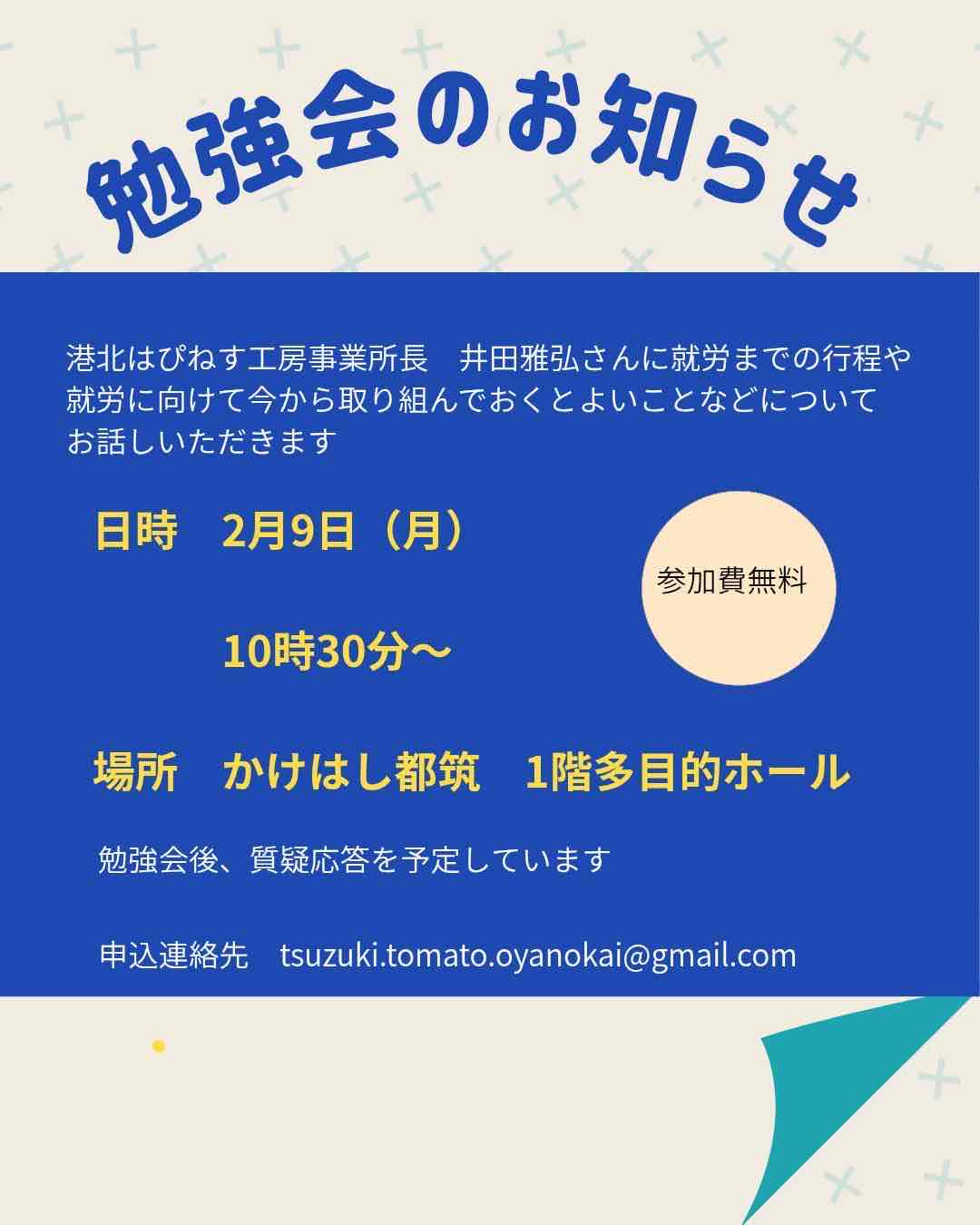 2/9(月)「とまとのおうち」親の会、勉強会のお知らせ