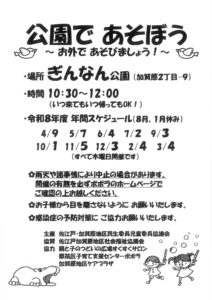 4/9(木)「ぎんなん公園であそぼう」開催します!