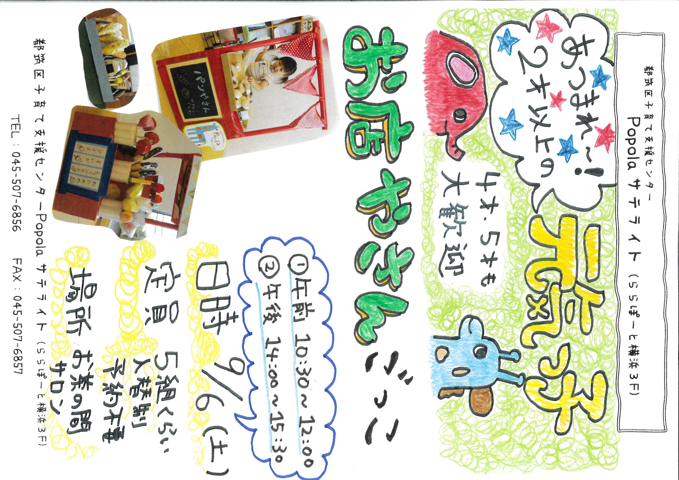 9/6(土) あつまれ~!2歳児からの元気っ子「お店やさんごっこ」開催するよ!