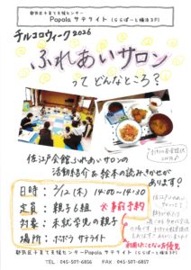 会 場:都筑区子育て支援センターポポラサテライト お茶の間サロン