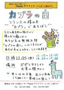 日時:12月25日(木)10:30〜12:00/14:00~15:30