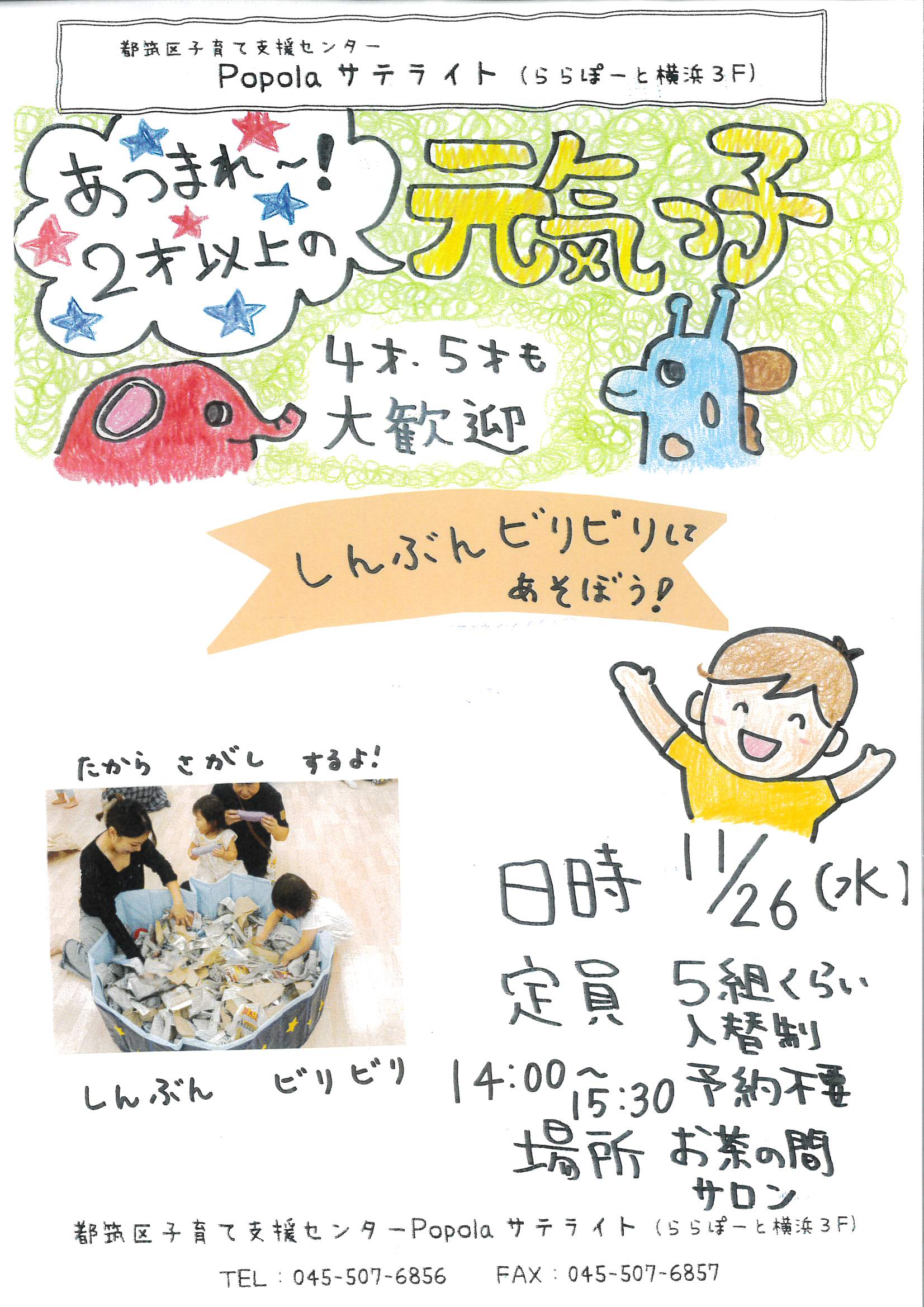 11/26(水)あつまれ~!2歳児からの元気っ子「しんぶんビリビリしてあそぼう!」開催するよ