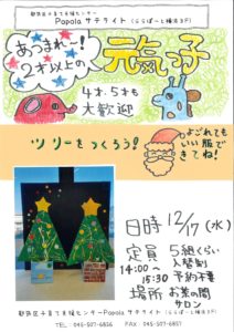 12/17(水)あつまれ~!2歳児からの元気っ子「ツリーをつくろう!」開催するよ